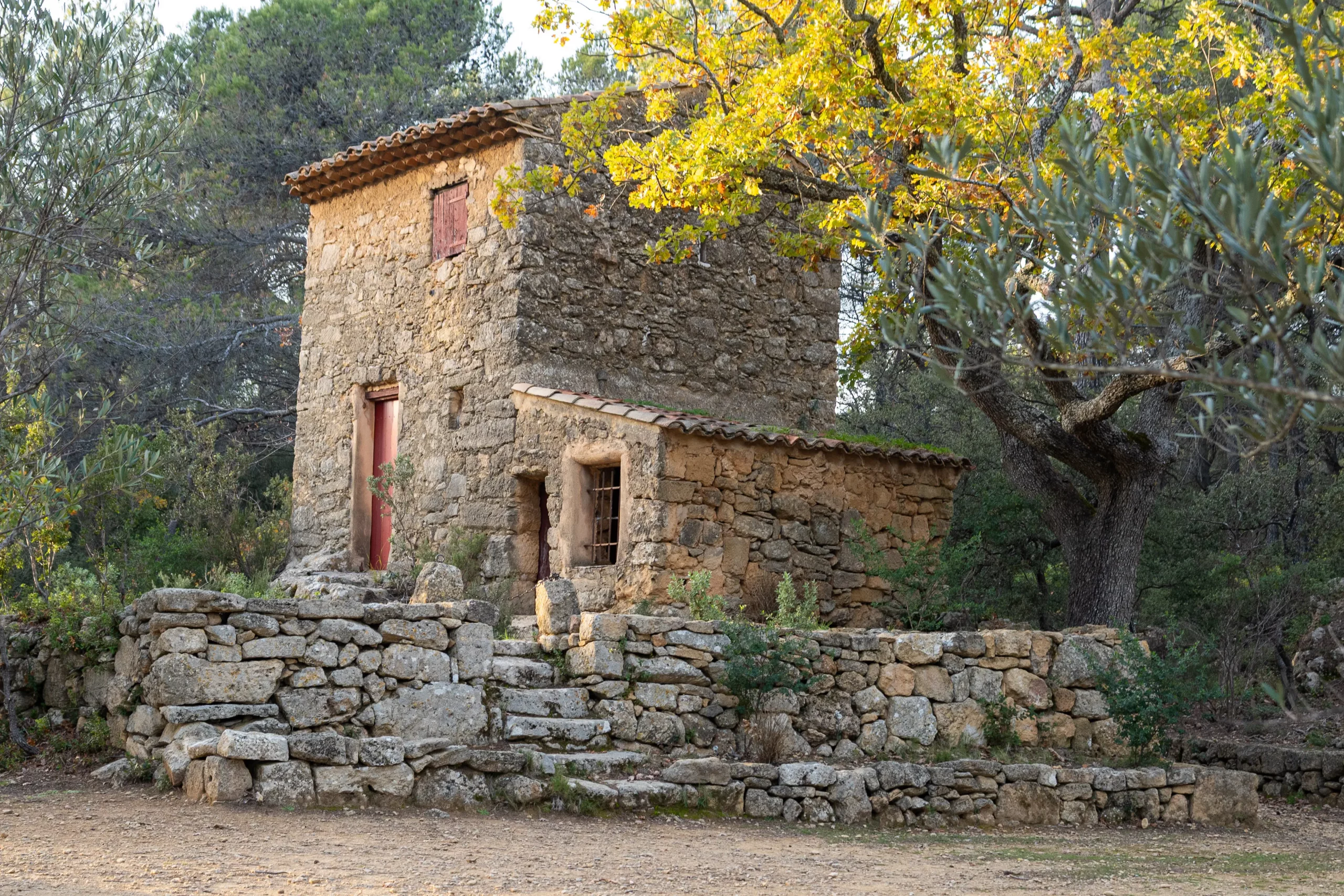 Le petit cabanon de pierre, restauré depuis l’ouverture du site en 2006, matérialise la présence du peintre dans la carrière. Il rappelle les séjours répétés de Cézanne, son besoin de solitude et son travail méthodique face au motif.